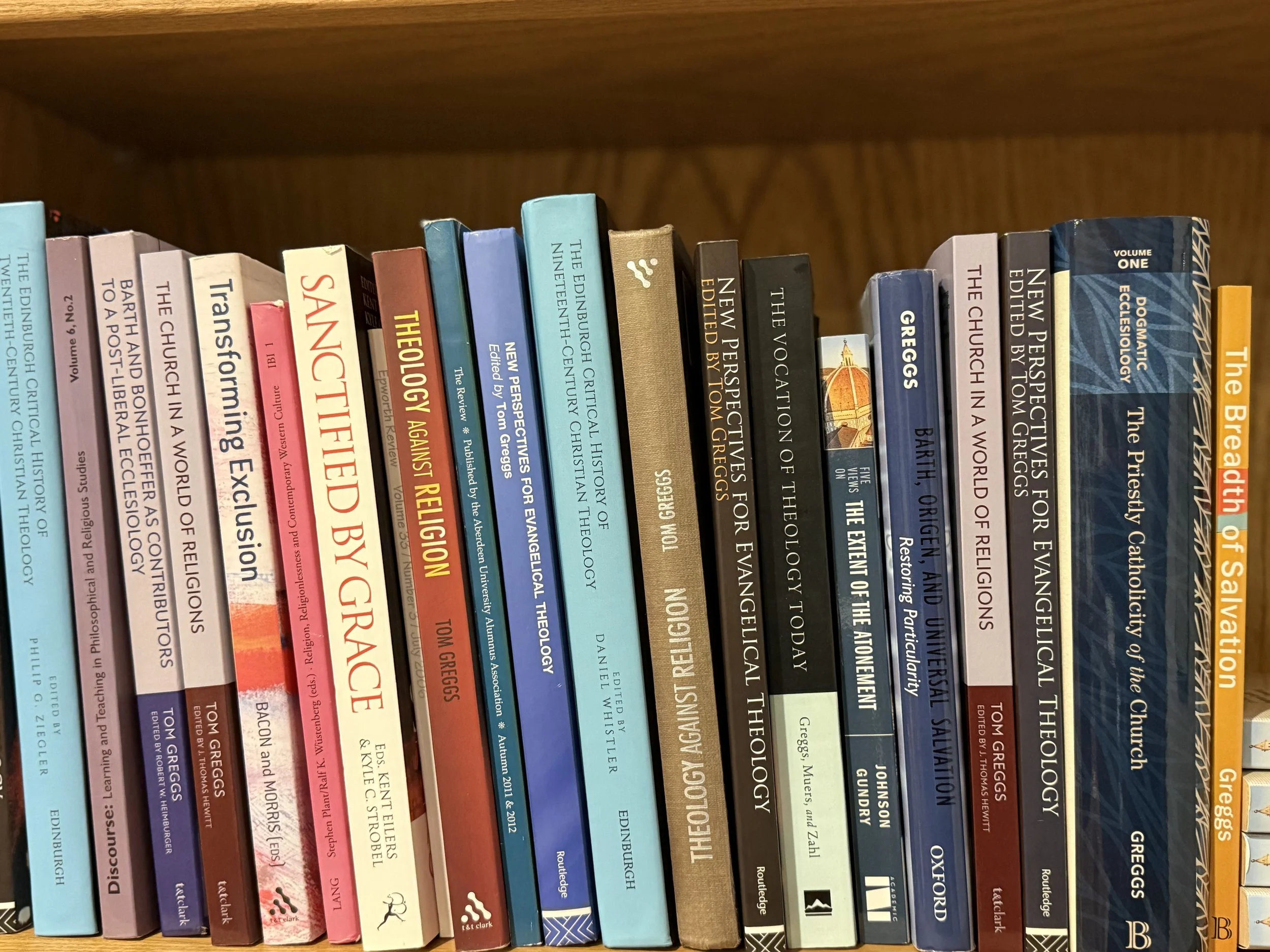 Greggs has been a Distinguished Visiting Professor of Arts and Sciences at the University of Virginia and a Visiting Fellow at St John’s College, Durham. He is a former Secretary of Society for the Study of Theology and former panel chair and book awards jury chair of the American Academy of Religion. He is Honorary Professor of Divinity at the University of Aberdeen and Honorary Professor of Systematic Theology at St Mellitus College, London. In 2008, he was made a Fellow of the Royal Society of Edinburgh (Scotland’s national academy). He also holds the higher (earned) doctoral degree of Doctor of Letters.